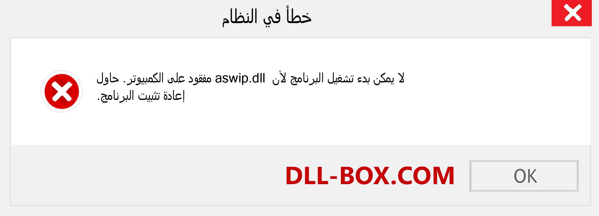 1. لا يمكن بدء تشغيل البرنامج لأن aswip.dll مفقود من جهاز الكمبيوتر الخاص بك. الرجاء إعادة تحميل البرنامج \ التطبيق لعلاج هذه المشكلة.